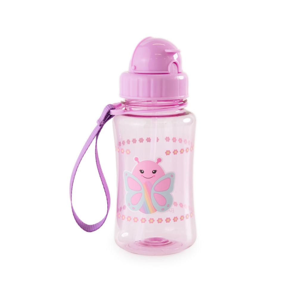 Garrafa Escolar 350ML Borboleta Com Canudo Rosa