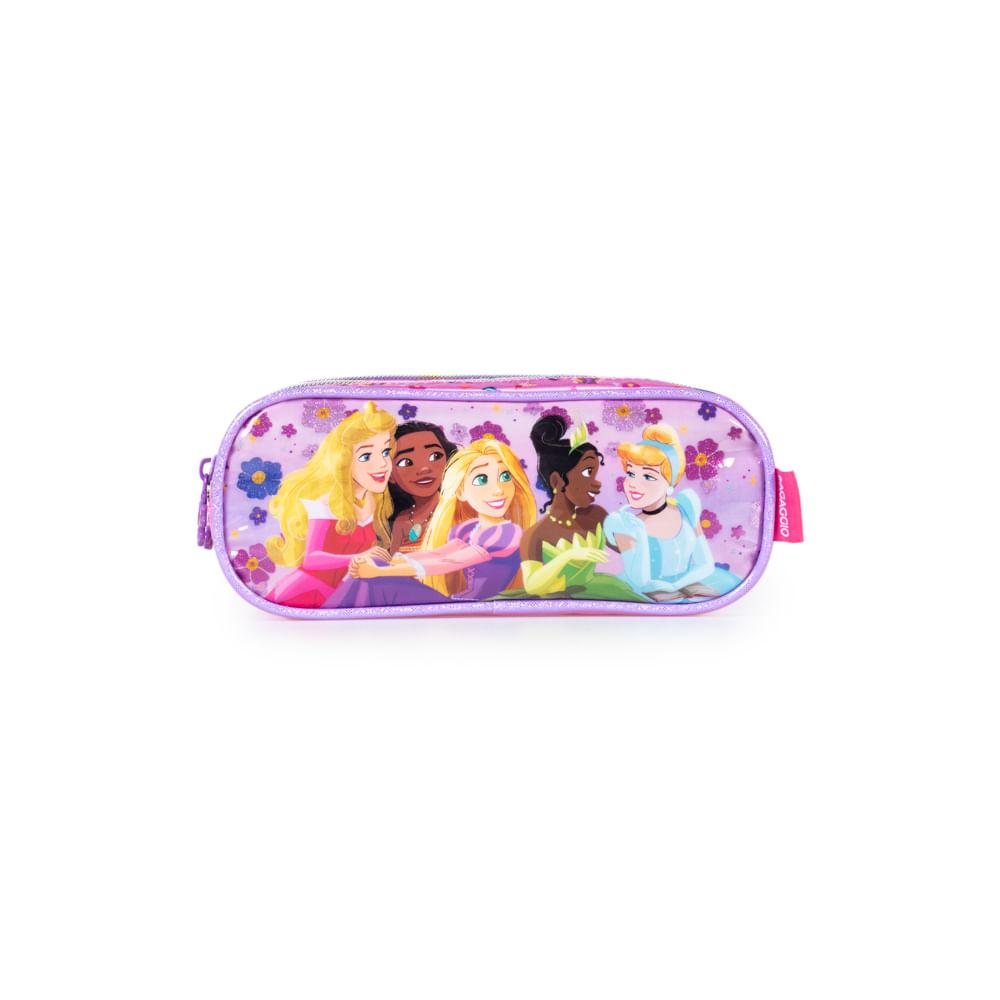 Estojo Escolar Feminino 3 Compartimentos Disney Princesas Premium Rosa