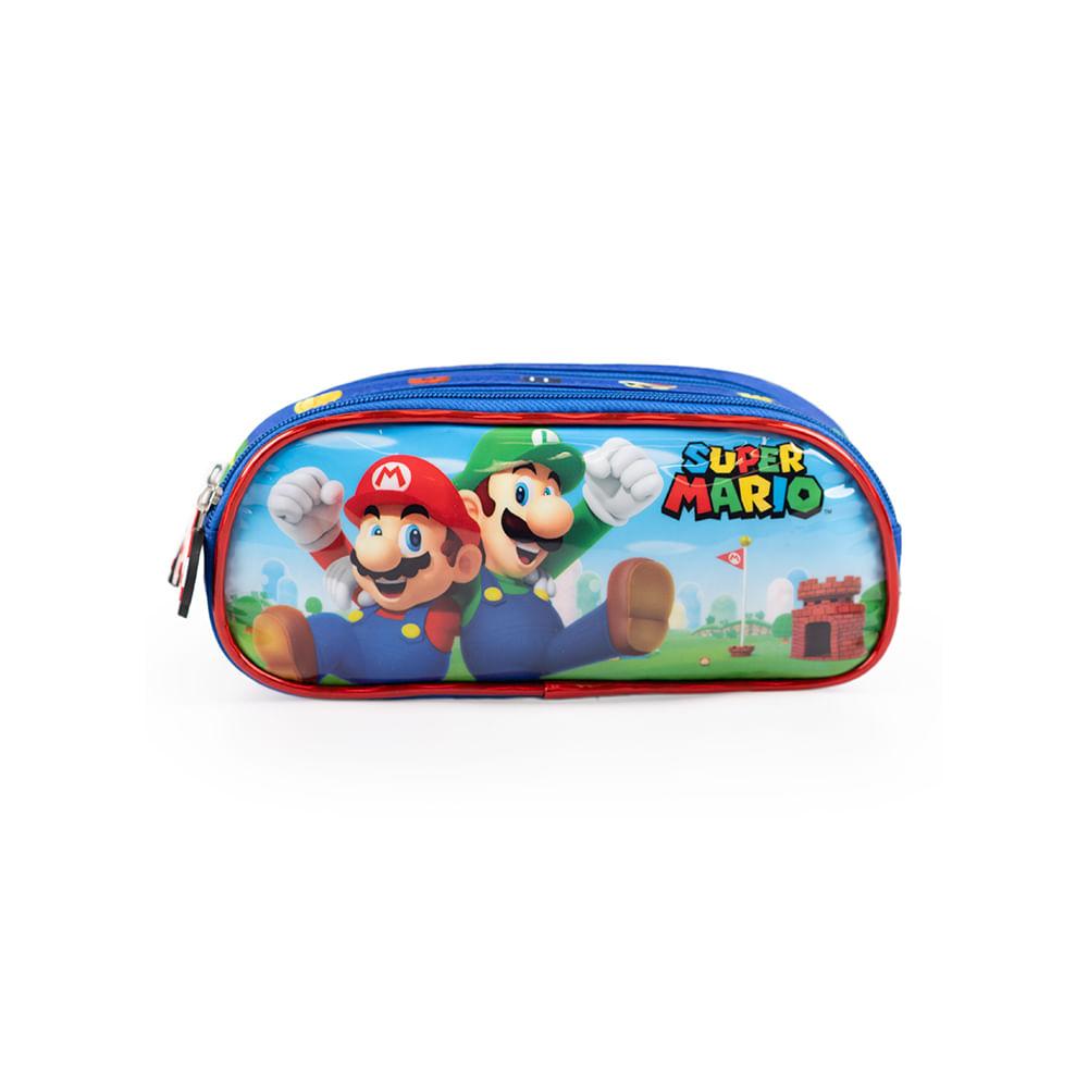 Estojo Escolar Infantil Masculino 3 Compartimentos Mario Bross Premium Azul