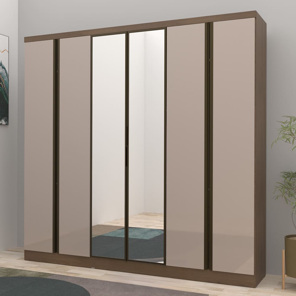 Guarda-Roupa Casal Bartira Monte Rei com Espelho, 6 Portas, 6 Gavetas - 238cm de largura