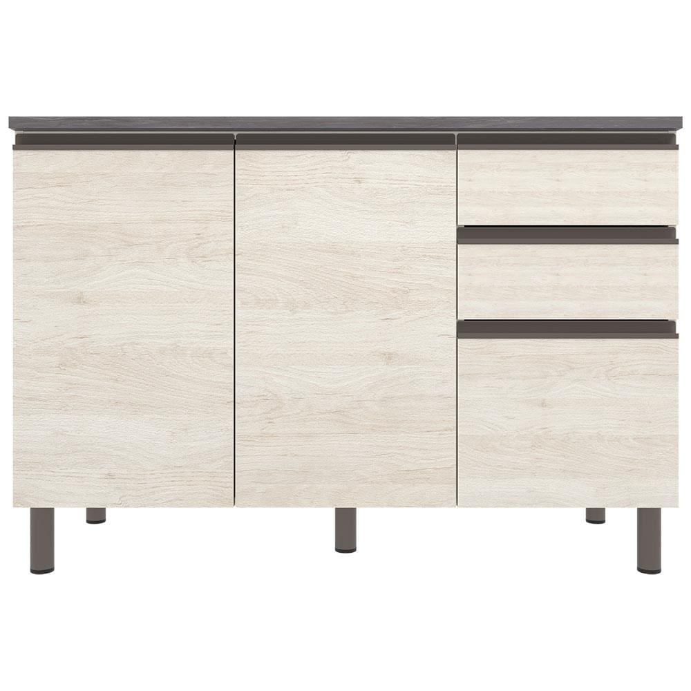 Balcão Bartira Cristal MDP 15mm com 2 Portas, 3 Gavetas e 1 Prateleira - 120,1cm de largura