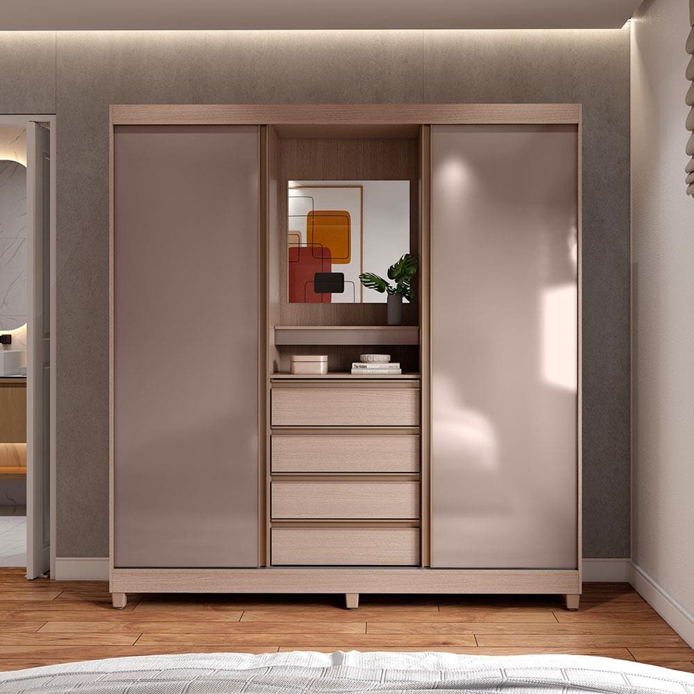 Guarda-Roupa Bartira Fortaleza II com Espelho, 2 Portas de Correr, 4 Gavetas - 184,5 cm de Largura