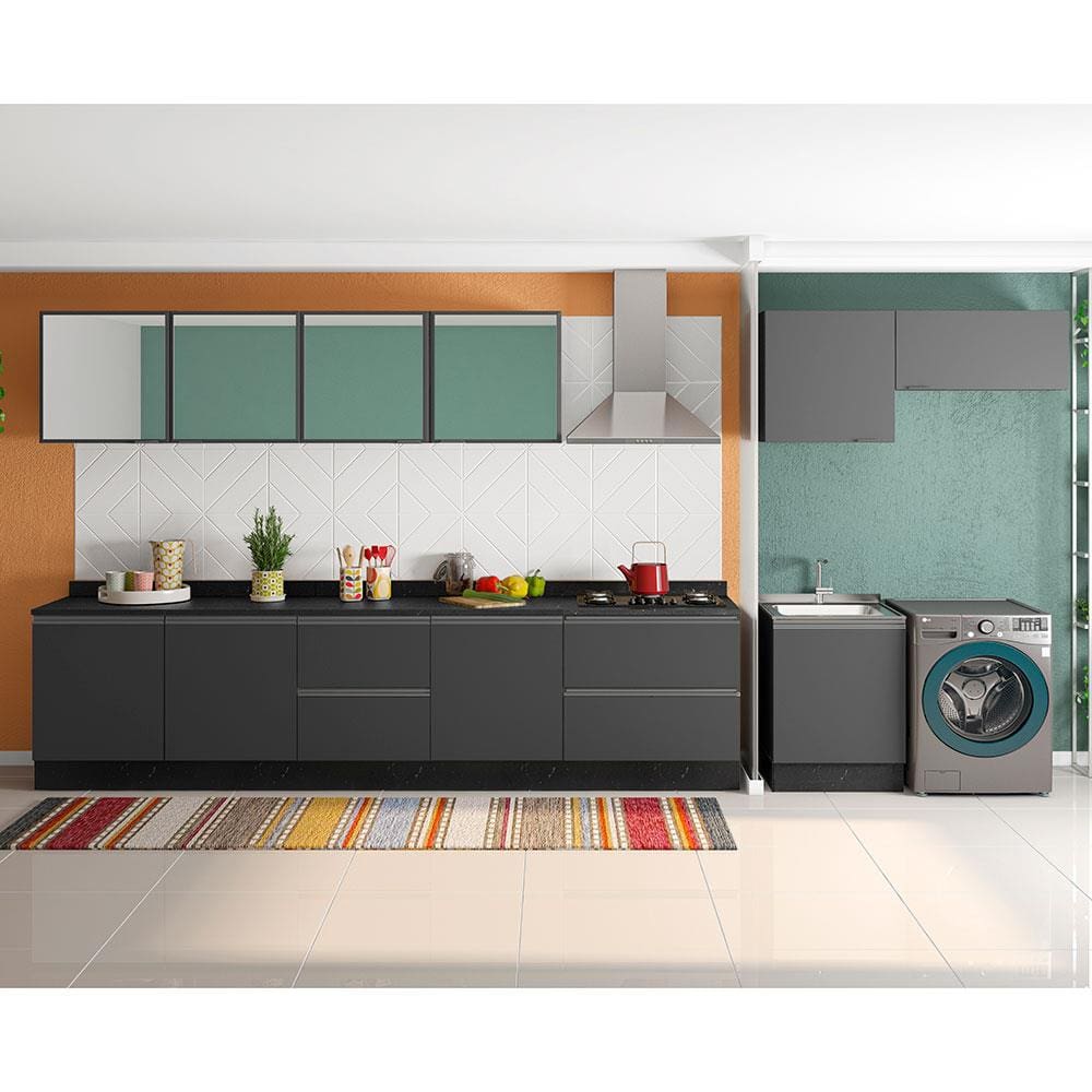 Cozinha Completa Bartira Linea com 11 Portas, 4 Gavetas e 6 Prateleiras - Grafite