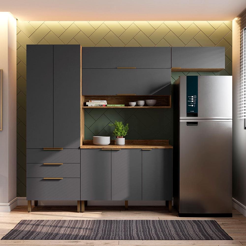 Cozinha Compacta Bartira Topázio UP com 8 Portas, 3 Gavetas e 5 Prateleiras - 262,5cm de largura