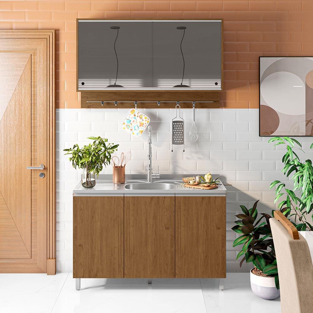 Cozinha Compacta Bartira Rubi com 6 Portas e 3 Prateleiras 160cm de Largura