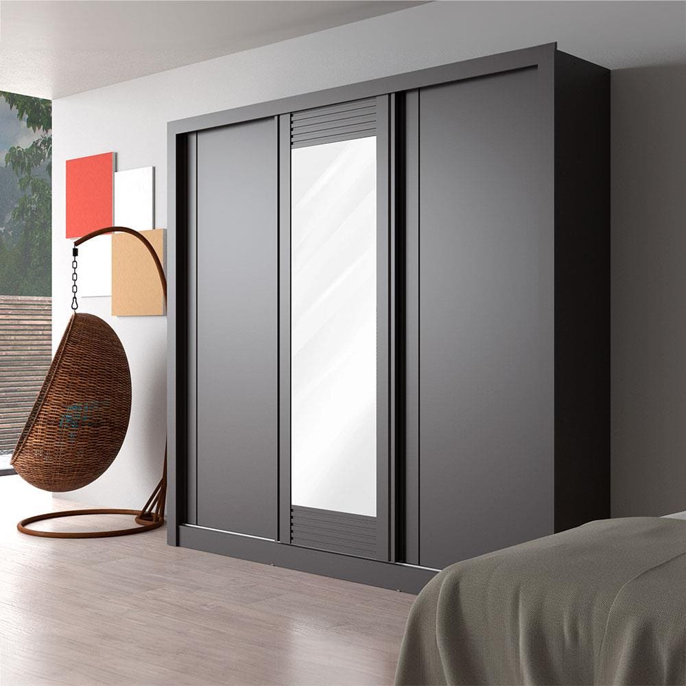 Guarda-Roupa Casal Bartira Village com 3 Portas, 4 Gavetas, Espelho e 243,1 cm de Largura