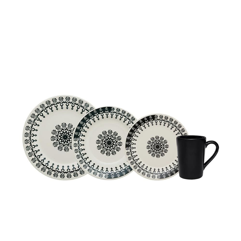 Aparelho de Jantar e Lanche 16 Peças Biona Mandala em Cerâmica – Estampado