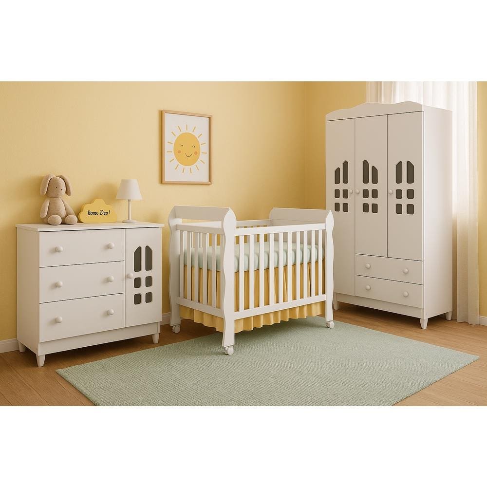 Quarto de Bebê Completo Carolina Baby com Berço Mini-Cama Mirelle Cômoda Eloá e Guarda-Roupa Eloá