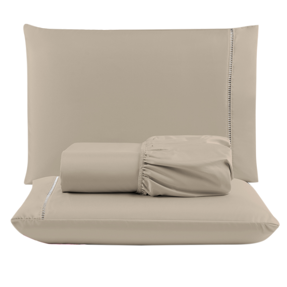 Jogo Cama Lençol Unique King Micro Percal 400 Fios Ponto Palito 3 Peças - Avelã