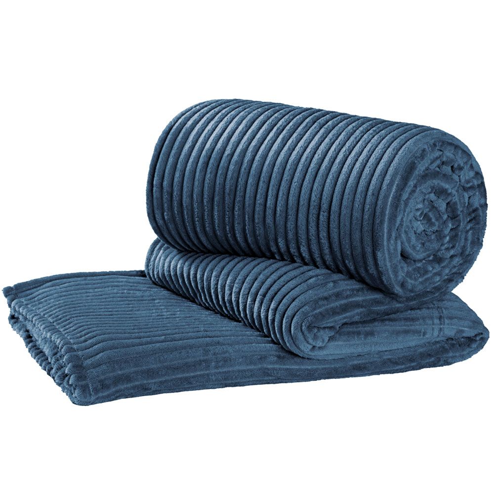 Cobertor Napoli Queen Manta Canelada Luxo - Azul