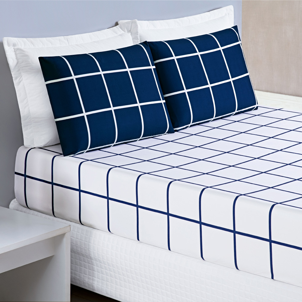 Jogo Cama Lençol Brooklyn Queen Quadriculado Micropercal 200 Fios 3 Peças - Azul Marinho