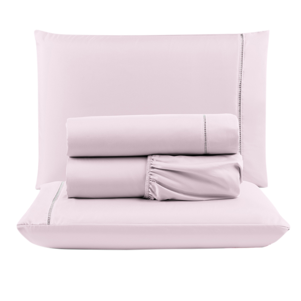 Jogo Cama Lençol Unique Casal Padrão Micro Percal 400 Fios Ponto Palito 4 Peças - Rosa