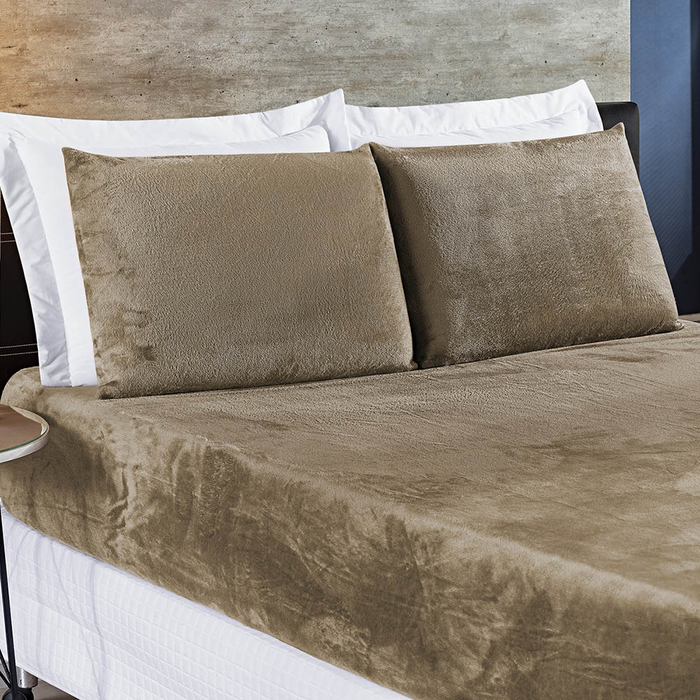 Jogo Cama Lençol BiaSoft Casal Padrão Manta Flannel Quente 3 Peças - Bege