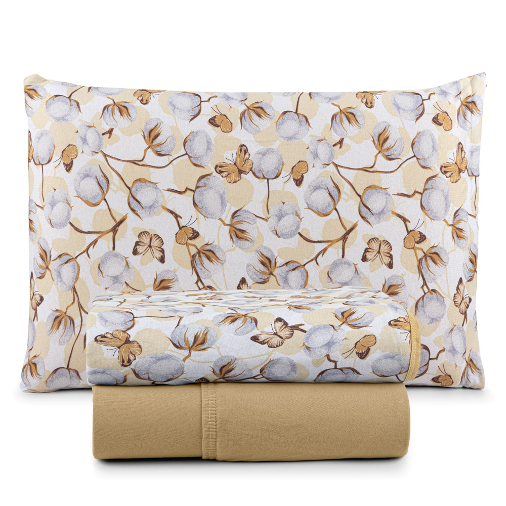 Jogo Cama Lençol Sonnet Solteiro Malha Estampada 100% Algodão 3 Peças - Borboleta - Mostarda