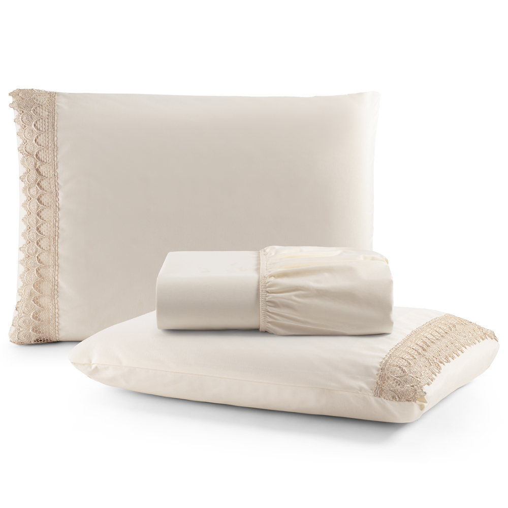 Jogo Cama Lençol Paris Casal Padrão Percal 180 Fios 100% Algodão Lese Bordada 4 Peças - Palha