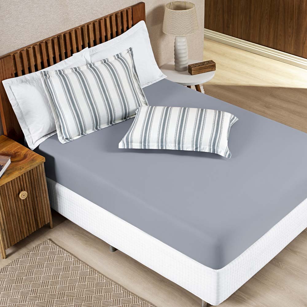 Jogo Cama Lençol Daily Casal Padrão Malha 100% Algodão Listrado 3 Peças - Bege