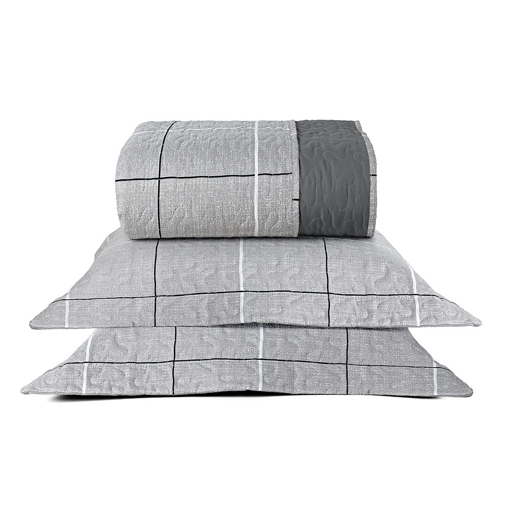 Kit Cobre Leito Colcha Celi King Dupla Face Micropercal 200 Fios 3 Peças Xadrez Grid Cinza