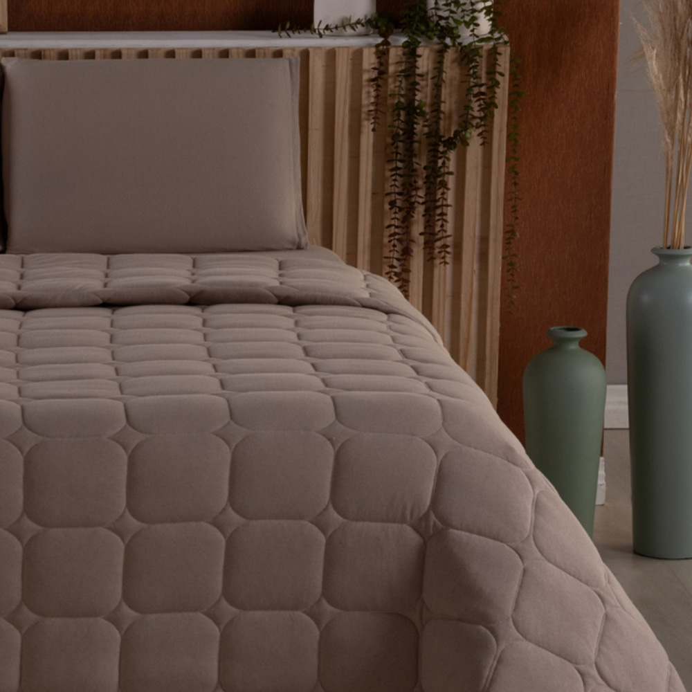 Kit Cobre Leito Colcha Livorno Solteiro Acolchoado Fofo Macio Malha 100% Algodão 2 Peças - Bege