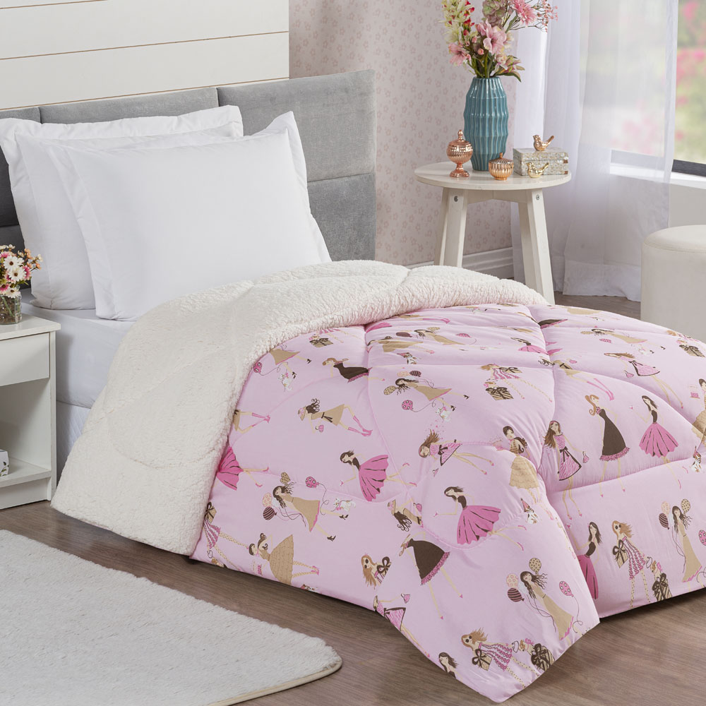 Coberdrom Menininhas Solteiro Infantil Sherpa Toque Lã de Carneiro 1 Peça - Rosa