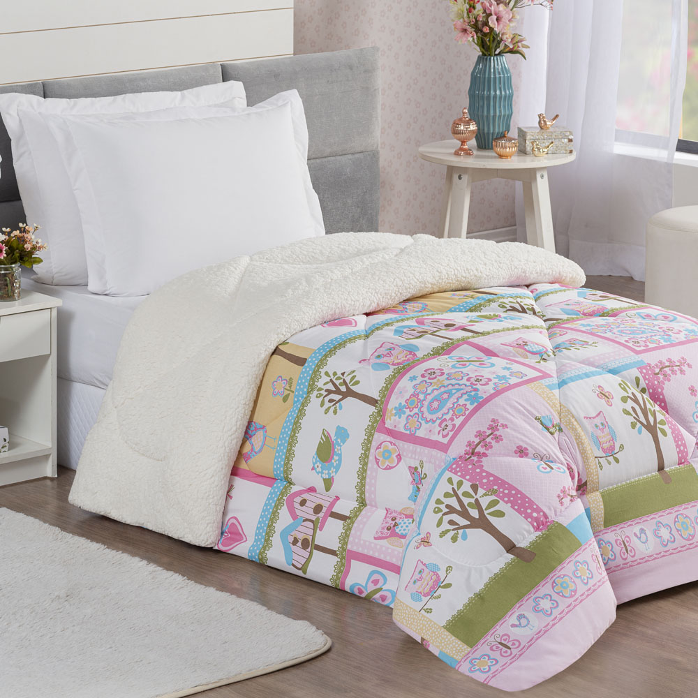 Coberdrom Coruja Doly Solteiro Infantil Sherpa Toque Lã de Carneiro 1 Peça - Rosa