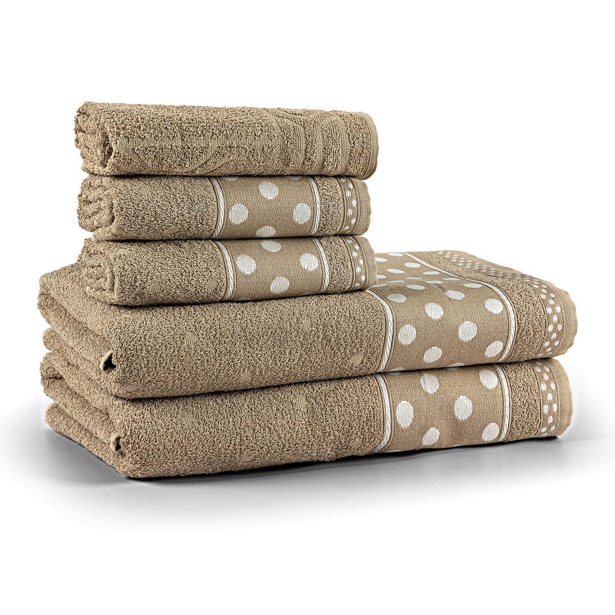 Jogo de Banho Meggy Poá Bolinhas Toalhas Macias 100% Algodão 5 Peças Bege