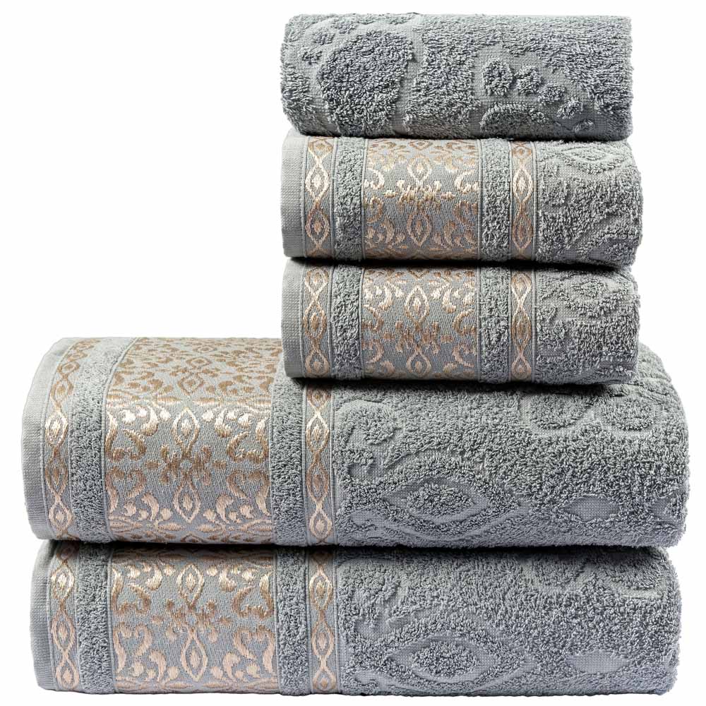 Jogo de Banho Toalhas Malau Decorado Algodão 5 Peças - Cinza Granito