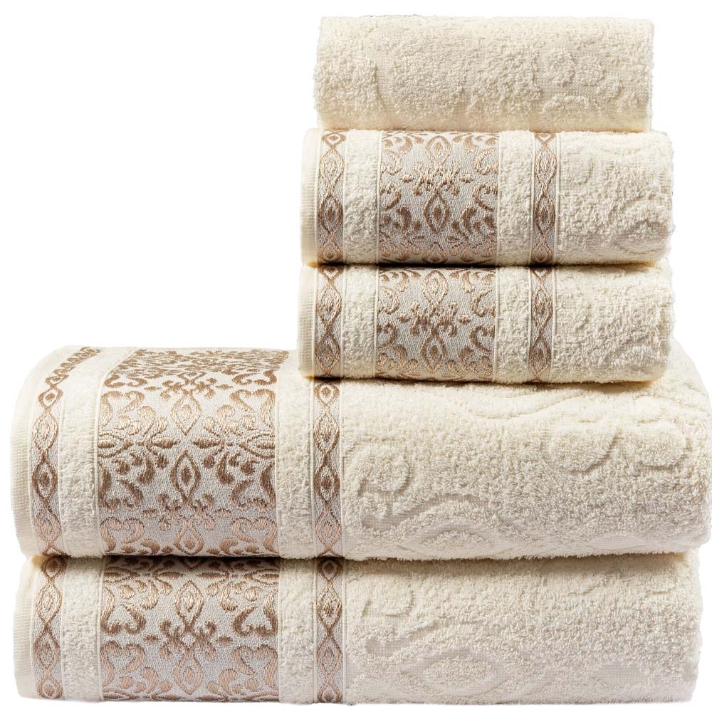Jogo de Banho Toalhas Malau Decorado Algodão 5 Peças - Palha Pérola