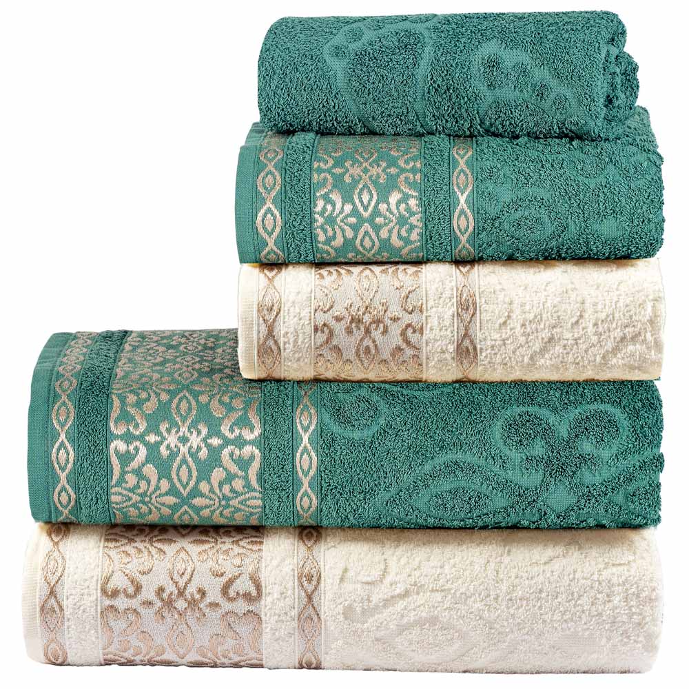 Jogo de Banho Toalhas Malau Decorado Algodão 5 Peças - Verde e Palha