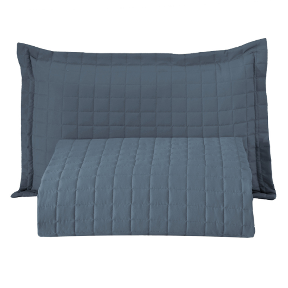 Kit Cobre Leito Colcha Bellini Solteiro Dupla Face Percal 300 Fios Textura Matelassê 2 Peças - Azul