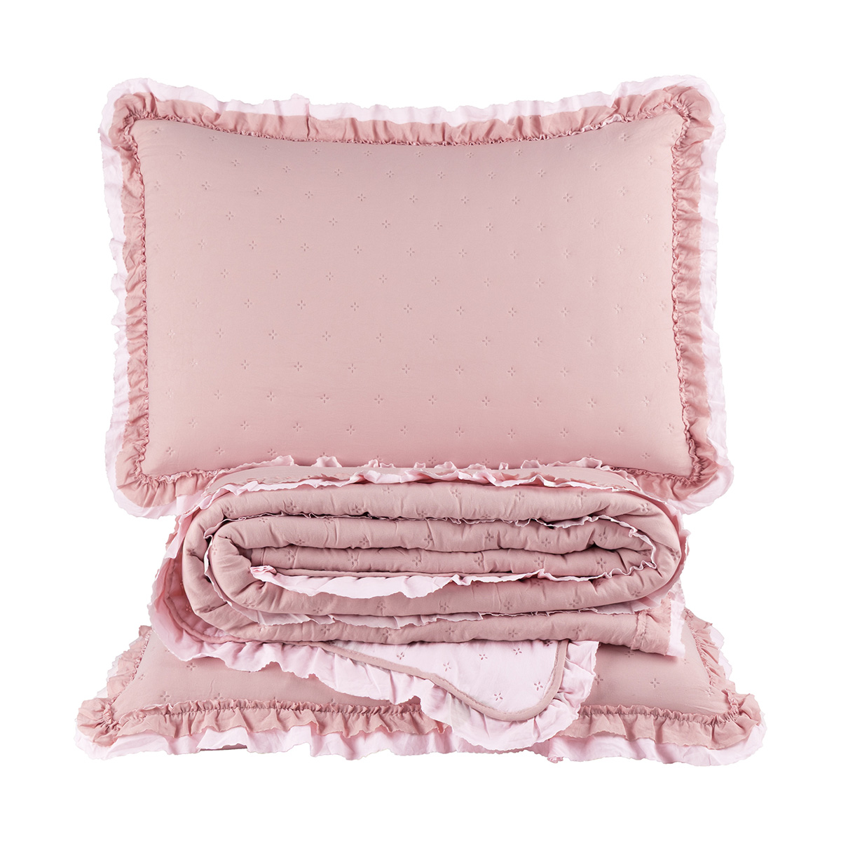 Kit Cobre Leito Colcha Vitta Queen Matelado c/ Babadinhos 200 Fios 3 Peças Rosa