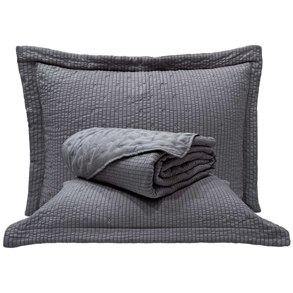 Kit Cobre Leito Colcha Livorno Queen Acolchoado Fofo Macio Malha 100% Algodão 3 Peças - Cinza