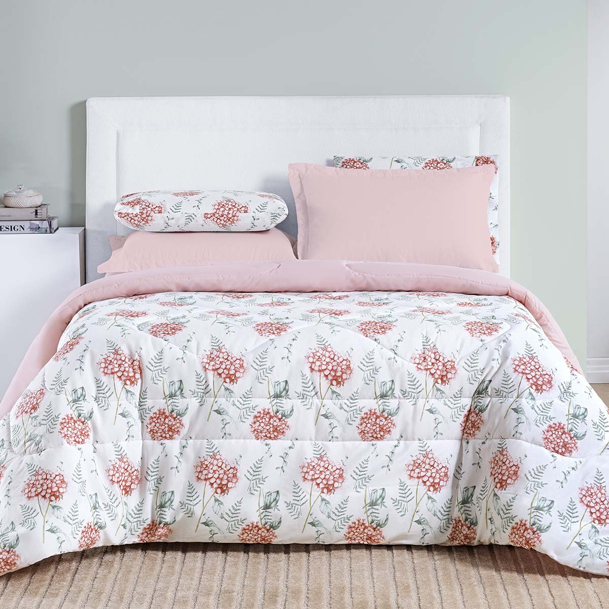 Edredom Cobertor Maris Super King Percalle 200 Fios Estampado Floral Hortênsia Salmão