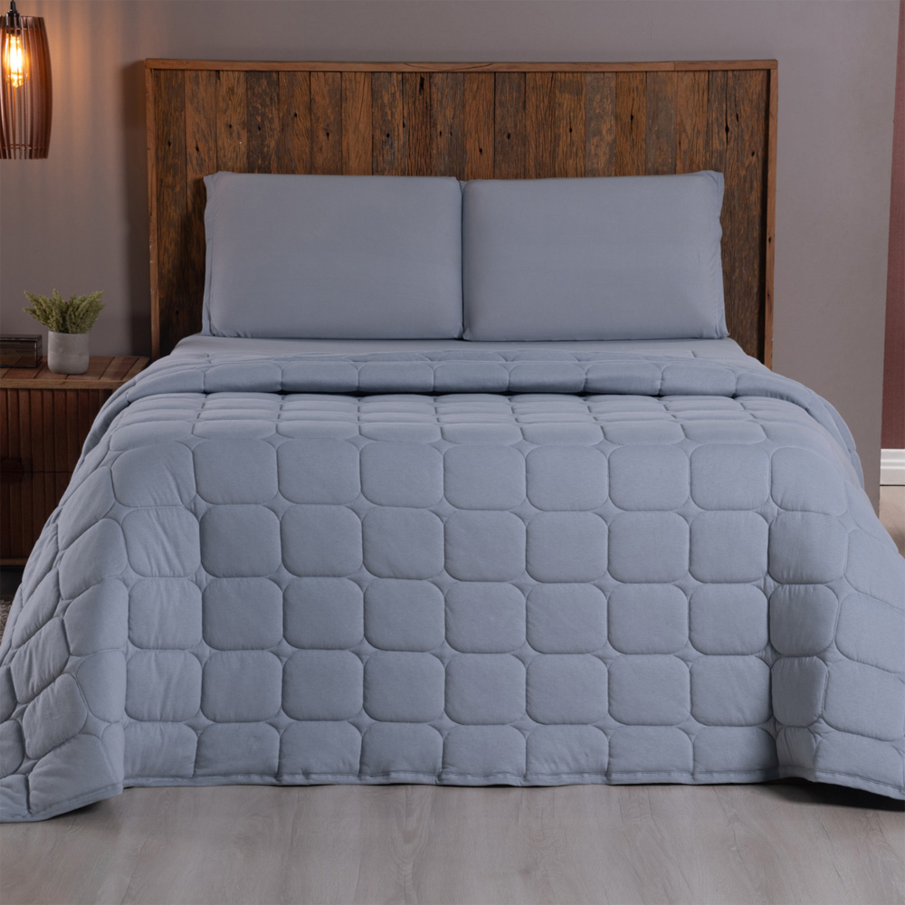 Kit Cobre Leito Colcha Livorno King Acolchoado Fofo Macio Malha 100% Algodão 3 Peças - Cinza