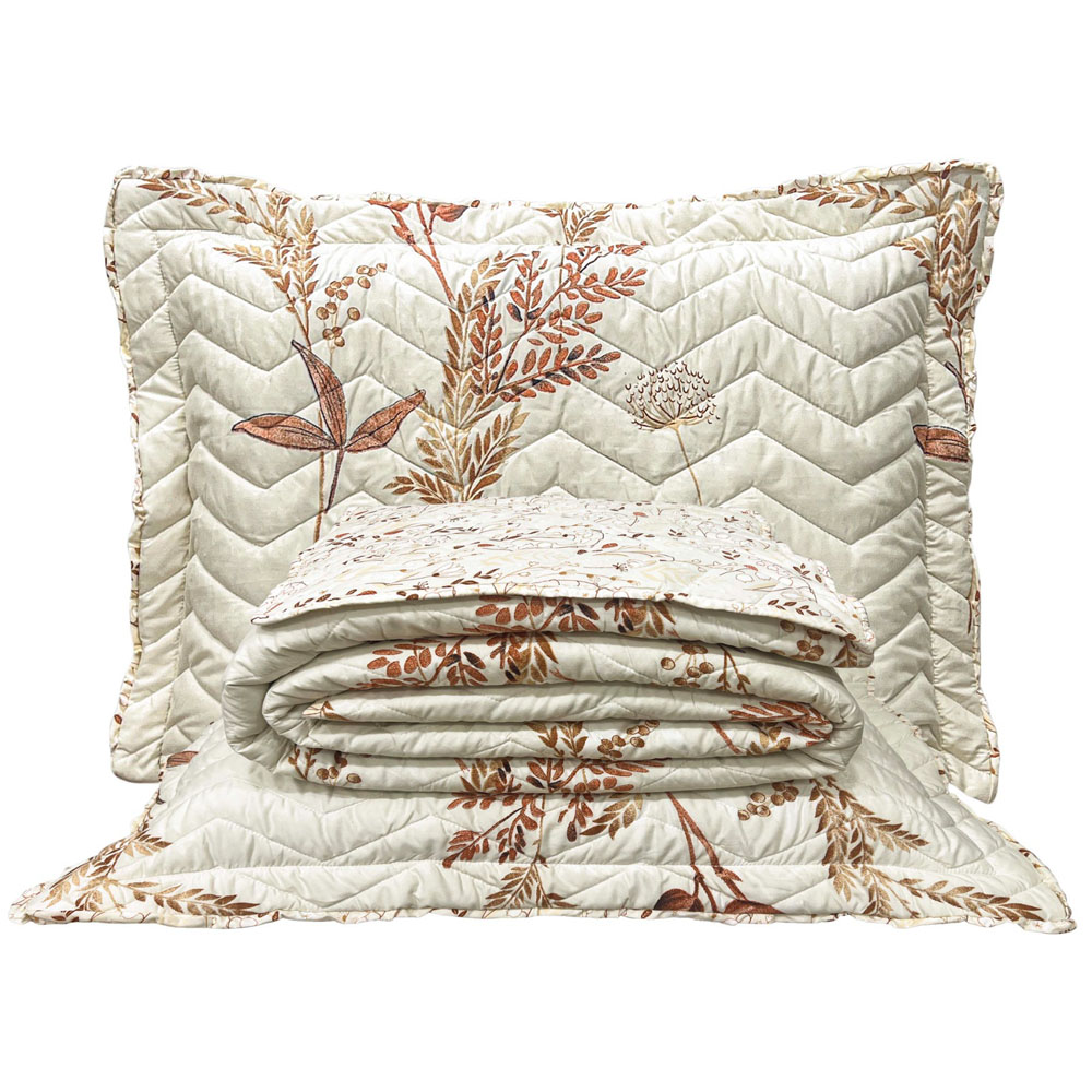 Kit Cobre Leito Colcha Classics Queen Dupla Face Percal 300 Fios Estampado 3 Peças - Flores Damasco - Palha