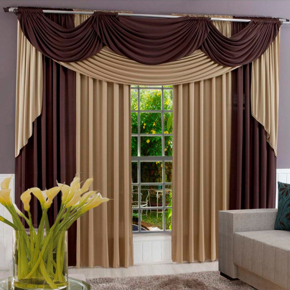 Cortina Imperiale Varão Tecido Malha Gel Sala Quarto 4,00 x 2,60 Metros - Tabaco e Avelã