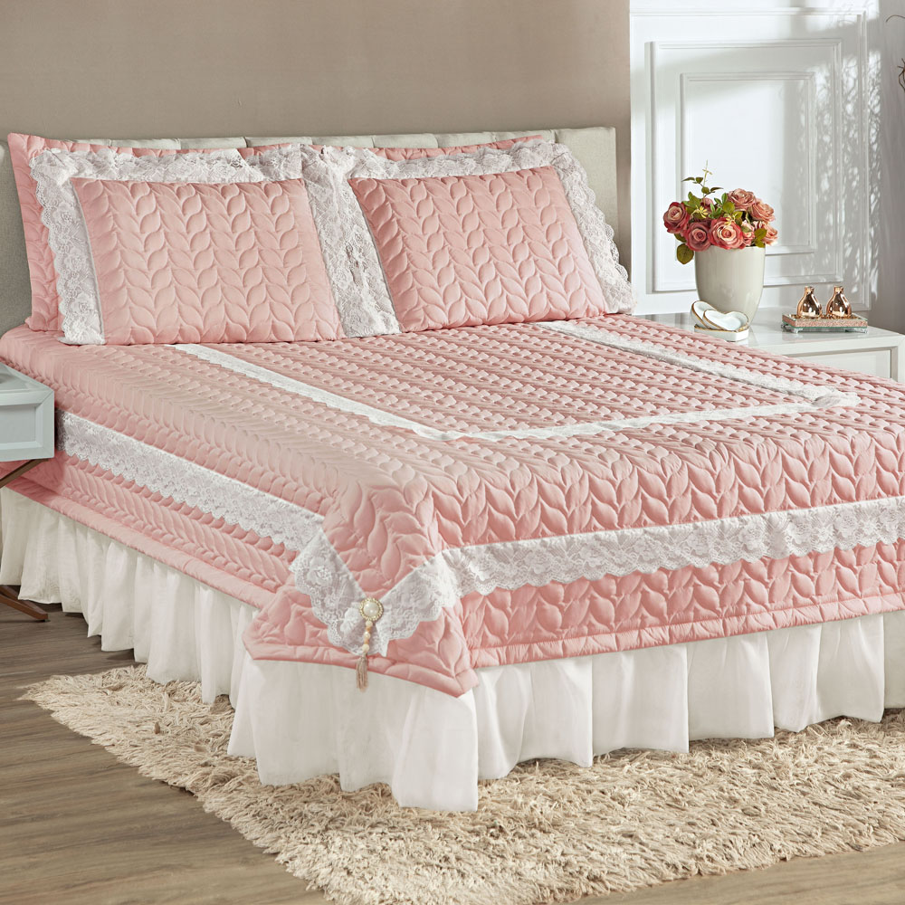 Kit Colcha Madalene Queen Micropercal 200 Fios 5 Peças - Rosê