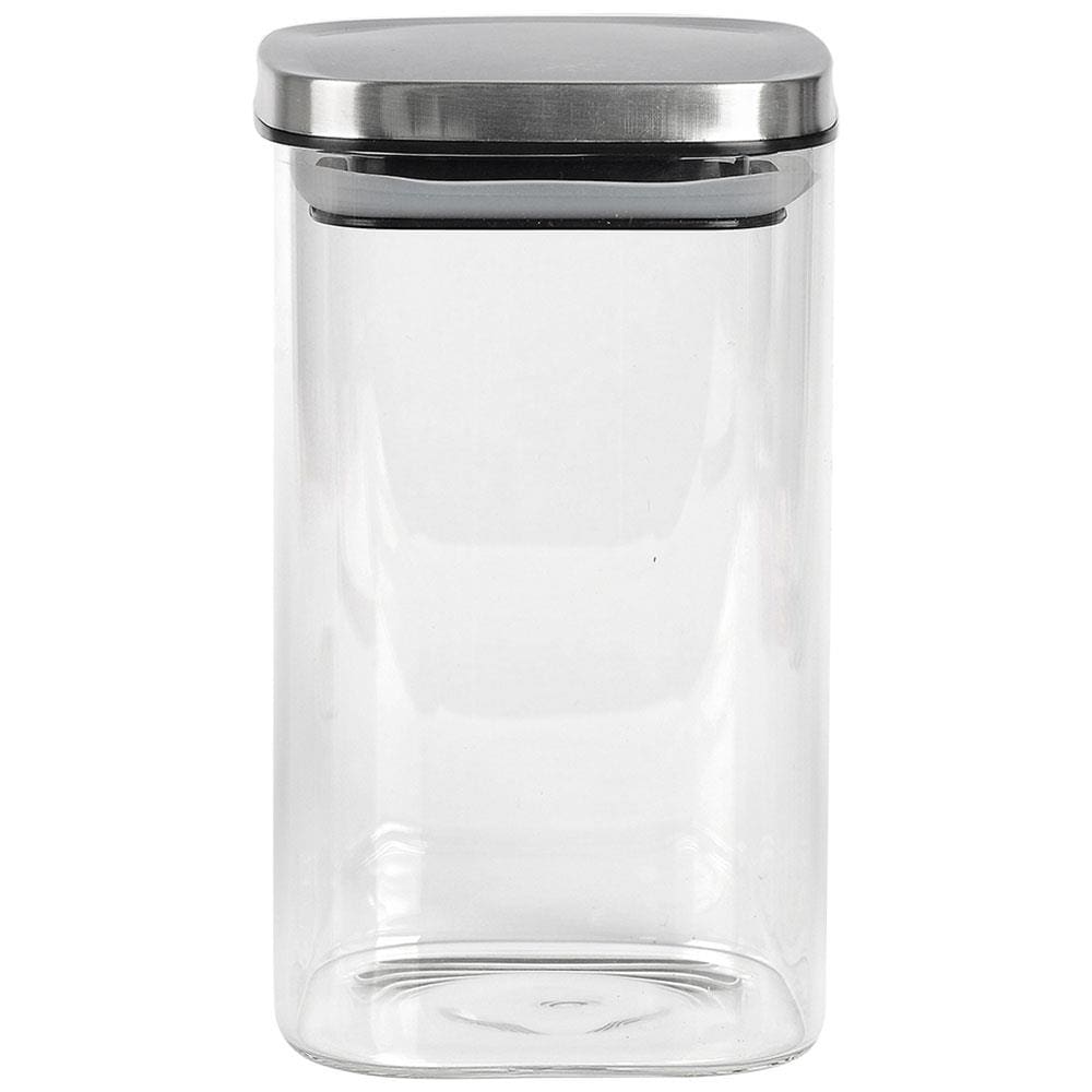 Porta Mantimentos Quadrado Dynasty em Vidro Borossilicato com Tampa de Metal Prata – 1,1 L