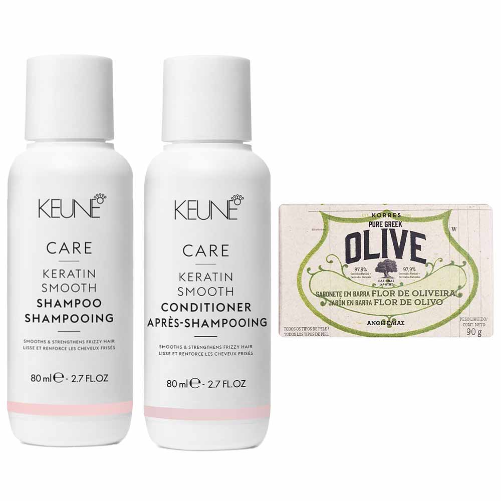 Keune & Korres Kit – Shampoo + Condicionador + Sabonete em Barra Flor de Oliveira