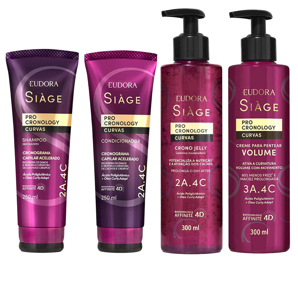 Eudora Siàge Pro Cronology Curvas Kit – Shampoo + Condicionador + Finalizador + Creme de Pentear Volume
