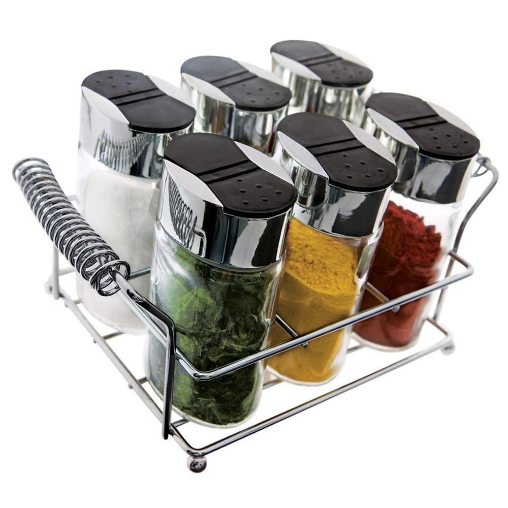 Porta Condimentos Euro Home Oval 6 Peças – Cromado/Transparente