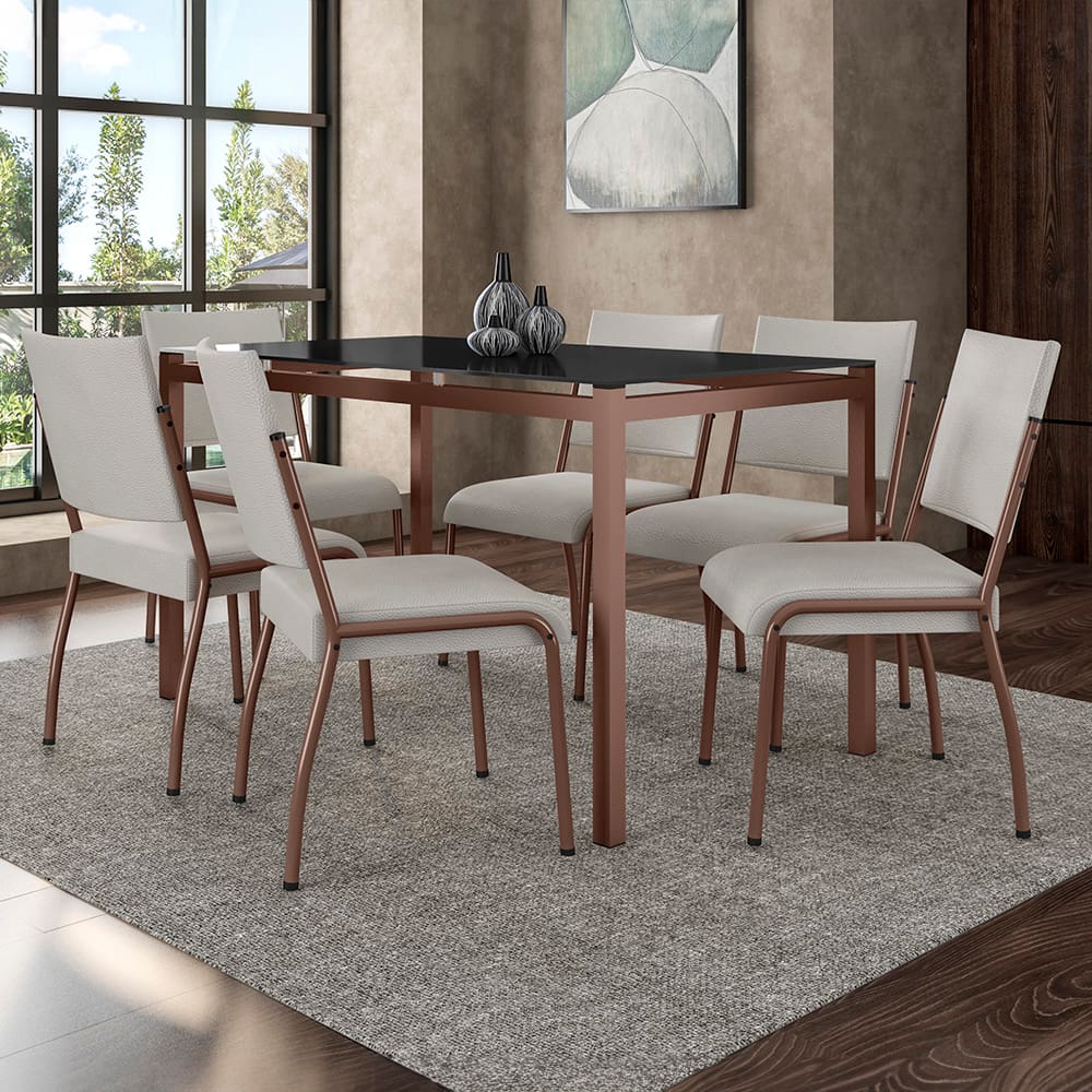 Conjunto Mesa Jantar Fabone Nagoia 6 Cadeiras Mesa Retangular 136x80cm Aço Carbono