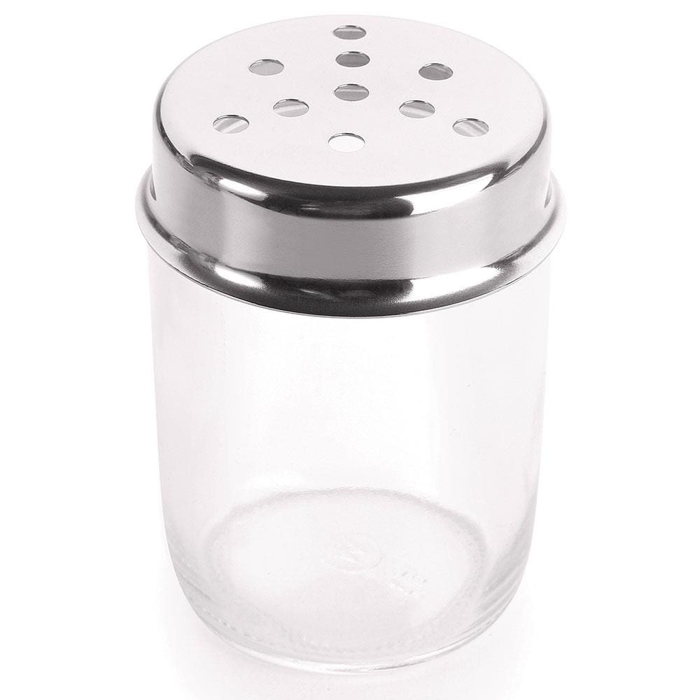 Porta Orégano ou Queijo Forma em Vidro e Aço Inox