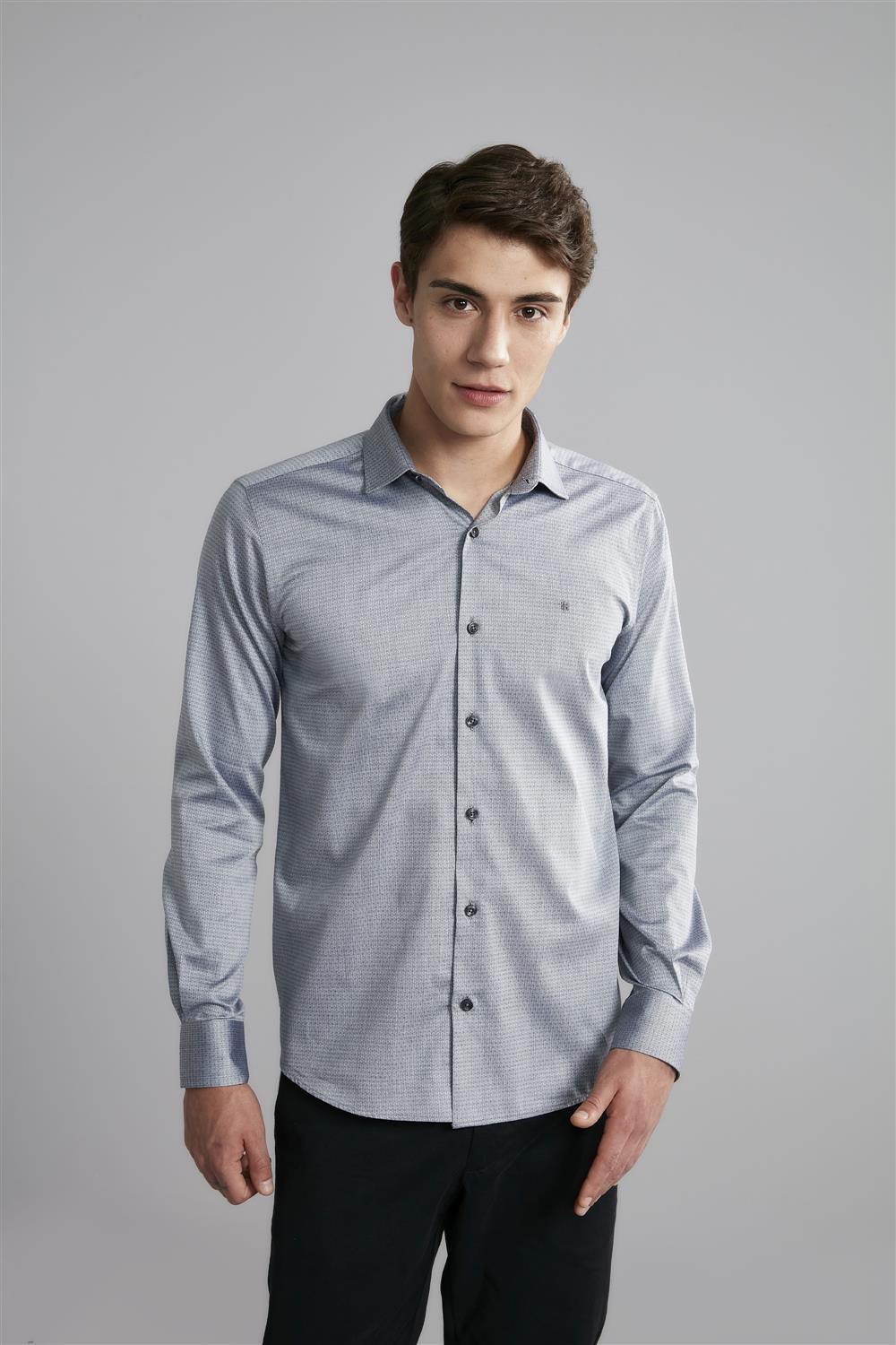 Camisa Manga Longa Algodão Egípcio Classic Fit - Cinza Claro