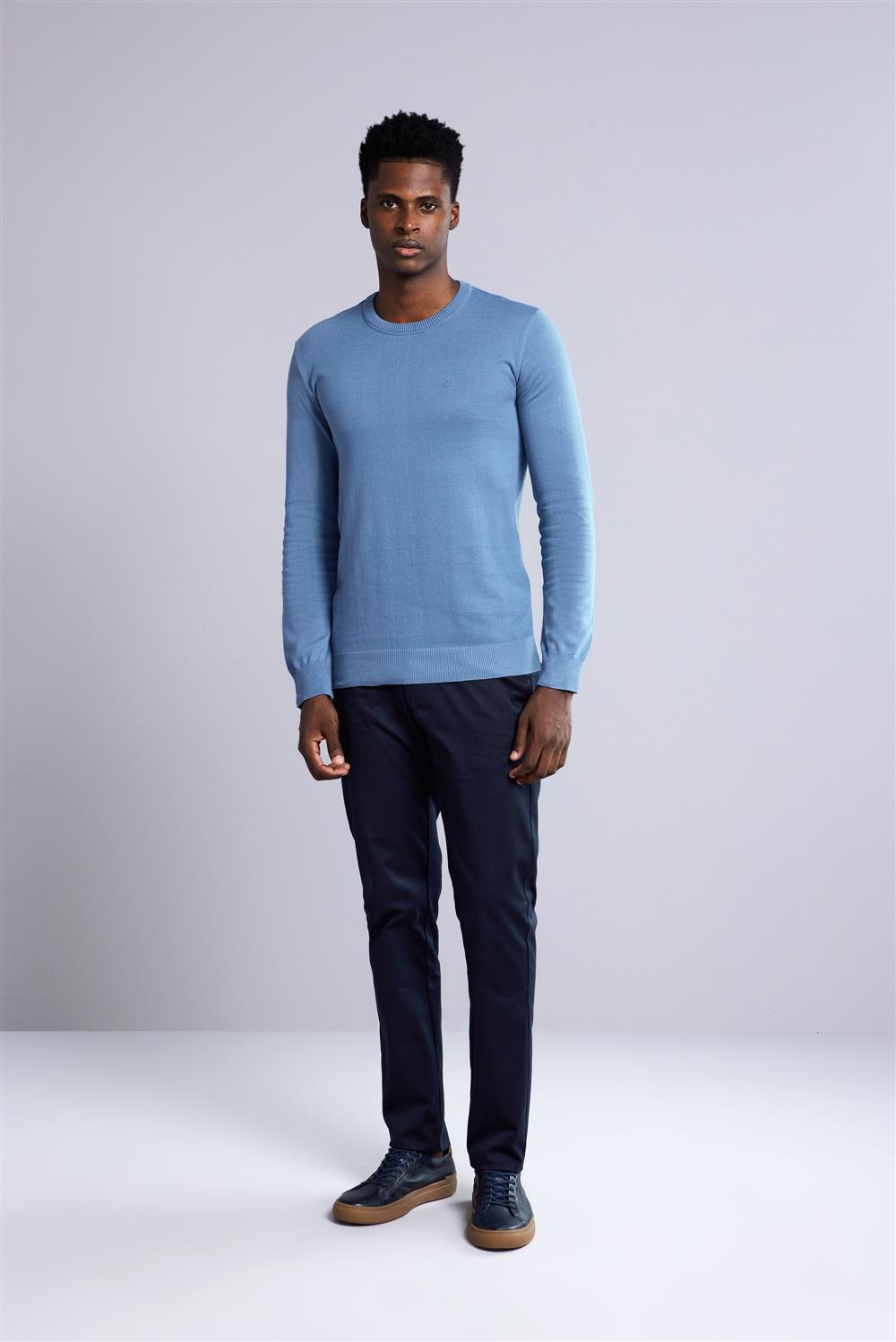 Tricot Básico Gola Careca - Azul Indigo