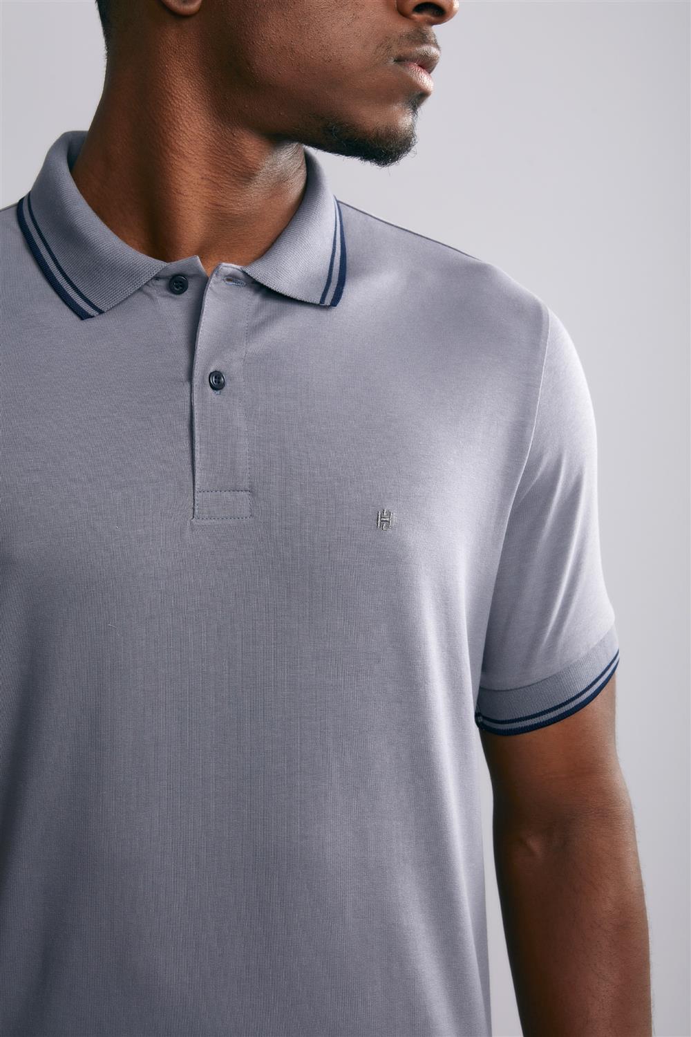 Polo Manga Curta Piquet Básica Slim Fit - Cinza Escuro