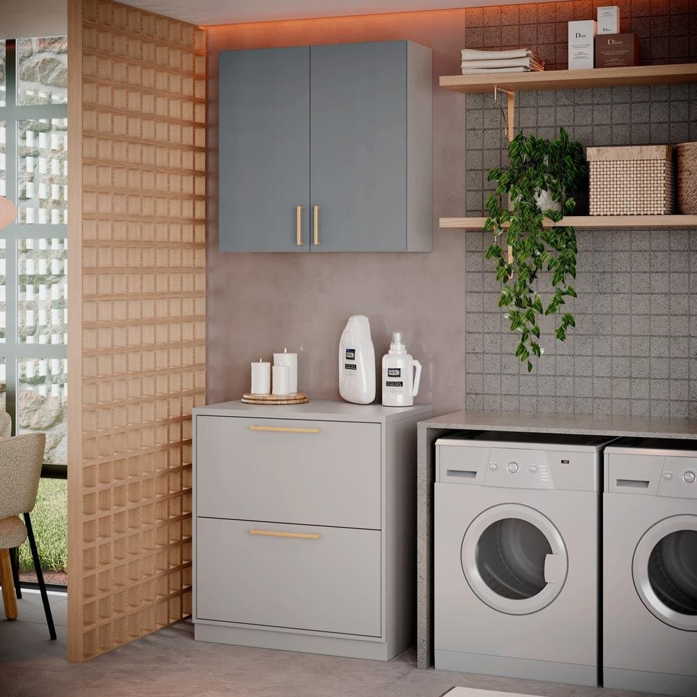 Conjunto de Armário Aéreo e Balcão Itatiaia Essence 3 Portas 1 Gaveta Puxadores Dourados Fendi Gris