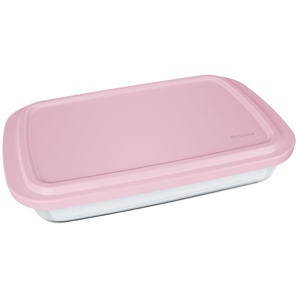 Conjunto de Assadeiras em Vidro Nadir Marinex com Tampa Plástica Rosa– 3 Peças