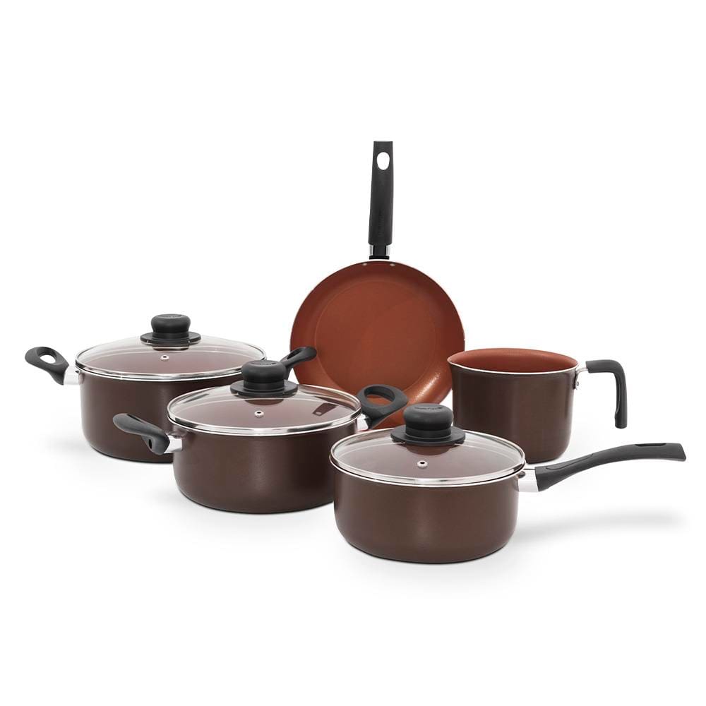 Conjunto de Panelas 5 Peças Multiflon Terracota com Revestimento Antiaderente Ultra7 e Tampas de Vidro - Marrom