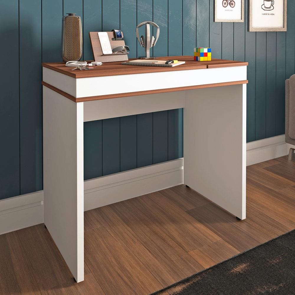 Escrivaninha Artany Mind com Tampo Duplo Basculante - Ipê/Branco