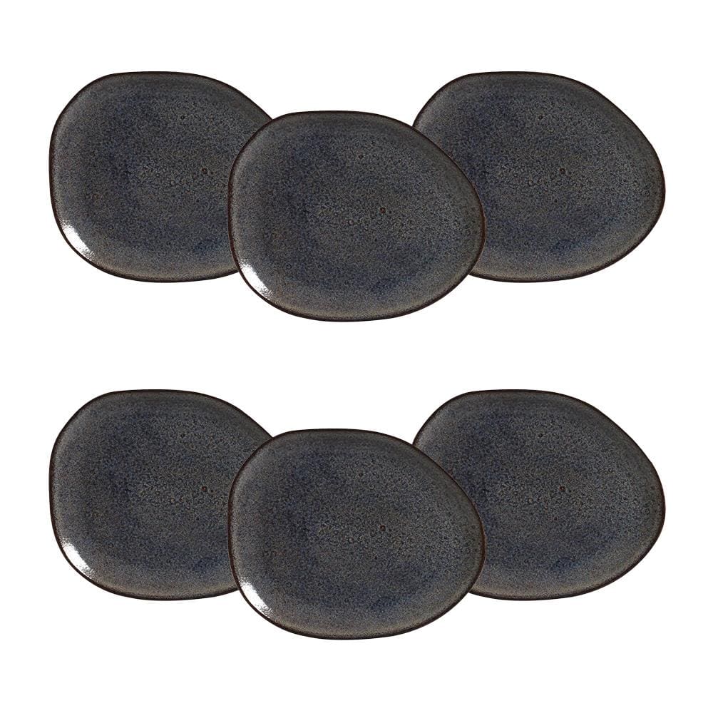 Conjunto de Pratos Rasos Ovais Porto Brasil Orgânico Titanium Azul Escuro 31cm - 6 Peças